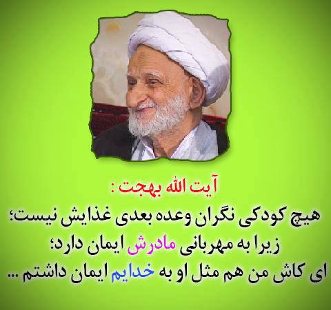 ماه قبل از فوت آیت الله بهجت ایشان فرموده بودند که: "آقا را بگویید بیایند